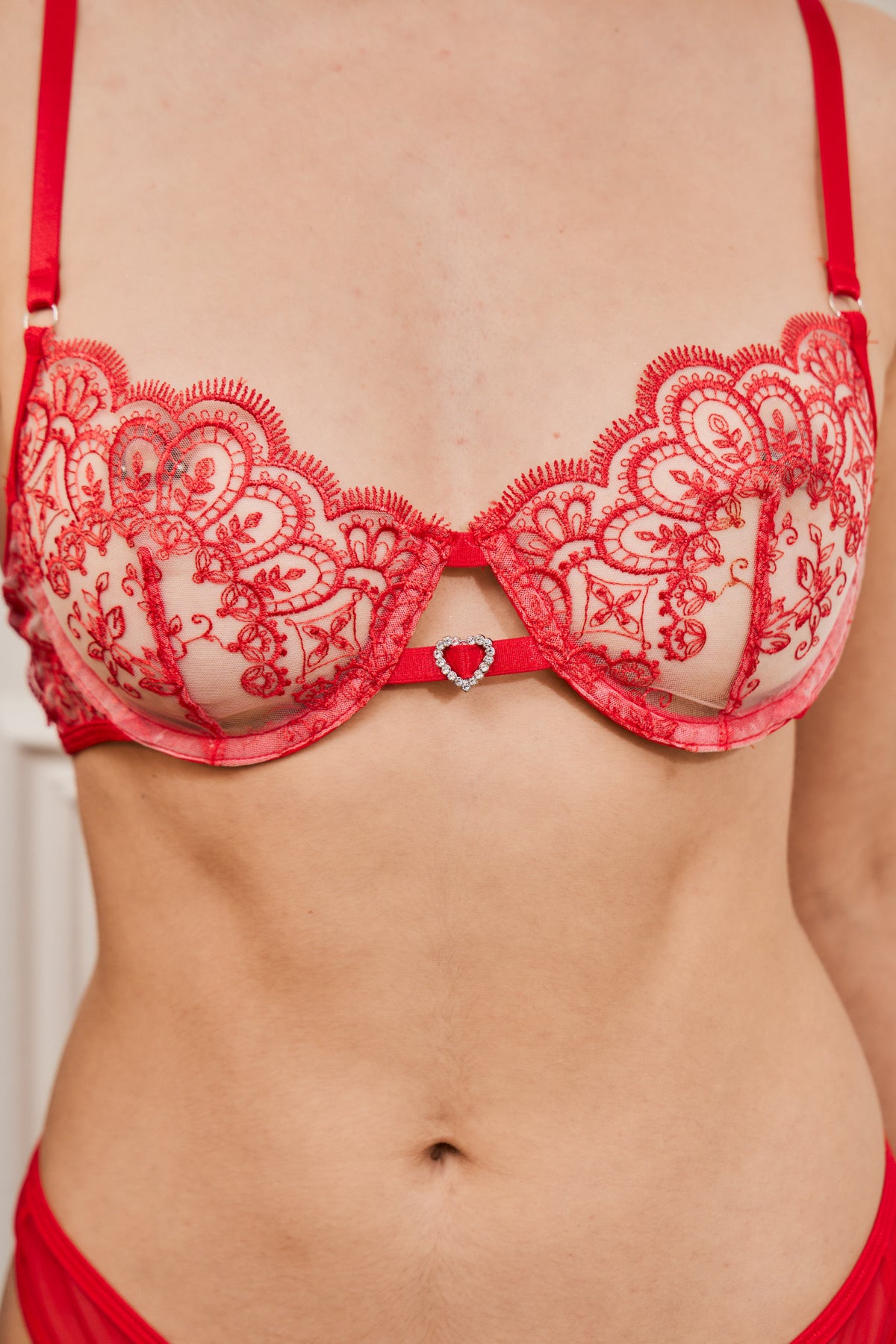 Le model La Rose allie transparence, broderie délicate et tulle pour révéler la beauté féminine. Avec ses fleurs brodées, elle offre un style à la fois sensuel et raffiné. Optez pour la délicatesse avec ce modèle rouge.